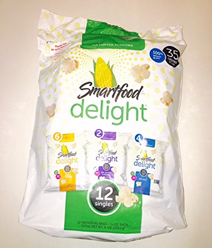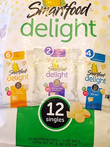 -. Feature : smartfood popcorn low calorie snacks / (1) 6 0z bag of (12) .5 oz bags includes: 6 Smartfood Delight White Cheddar Popcorn, 2 Sea Salted Caramel Popcorn and 4 Smartfood Delight Sea Salt Popcorn Ideal size bag for enjoying during your next movie Butter flavored popcorn perfect for individual snacking Enjoy as an on-the-go snack