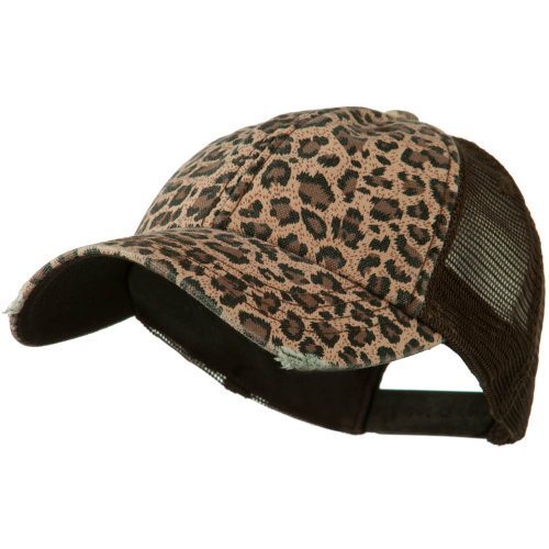 Binding : Apparel Product Description | From | To | Price per Piece | | 1 | 11 | Piece | $5.97 | | 12 | | Piece | $4.97 | The price will be calculated automatically based on how many items you purchase. Low profile soft structured canvas leopard print cap with mesh back has a distressed look with frayed bill, contrasting under bill and sweatband, and plastic adjustable snap. The cap comes in different colors. One size fits most. 70% Cotton / 30% Polyester. Made in China. 0