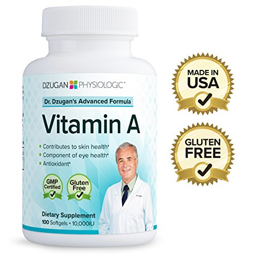 -. Title : Dr. Dzugan's ADVANCED Vitamin A Formula :: GMP Certified, Gluten Free! :: 10,000IU 100 Softgels :: Skin Health, Eye Health, Antioxidant