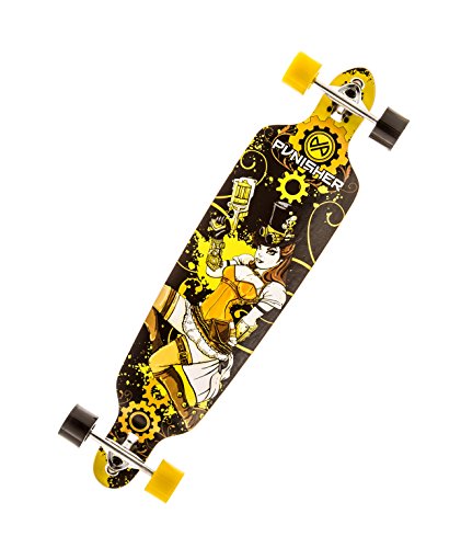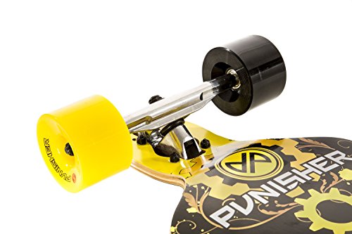 -. Binding : Sports -. Brand : Punisher Skateboards -. Color : Yellow/Black -. Department : unisex-adult -. EAN : 0725103900209 -. Feature : 40-Inch x 9-Inch 7-Ply Full Canadian Maple Longboard with Step Through Drop Down Deck / Concave Deck Features Day of the Dead Themed Graphics / 7-Inch Heavy-Duty Polished Trucks and Bases; 76mm x 53mm Poly Urethane Cast Wheels. / ABEC-9 Bearings for High Speed Riding; Heavy Duty Grip Tape / Formaldehyde FREE Wood! ASTM and CPSC compliant -. Label : Bike USA -. Manufacturer : Bike USA -. Model : 9020 -. MPN : 9020 -. NumberOfItems : 1 -. PackageQuantity : 1 -. PartNumber : 9020 -. ProductGroup : Sports -. ProductTypeName : OUTDOOR_RECREATION_PRODUCT -. Publisher : Bike USA -. Size : 40-Inch -. Studio : Bike USA -. Title : Punisher Skateboards Steampunk Drop-Through Canadian Maple Longboard Skateboard with Concave Deck, Yellow/Black, 40-Inch -. UPC : 725103900209