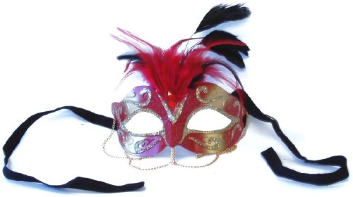 -. Feature : Paper mache comfortable mask / Feathers glitter and chain trim / Ribbon ties / Brand new