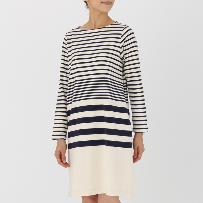 Muji 오거닉 코튼태 번째 패널 보더 원피스(부인) 부인M네이비 편의점 수취가