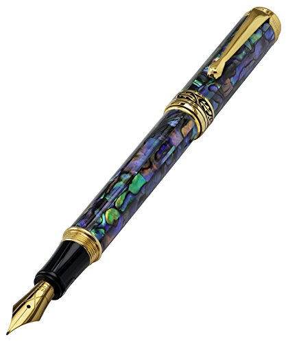 -. Title : Xezo Natural Paua Sea Shell Fountain Pen with Massive Solid 18-Karat Gold Medium Nib. Screw-on cap. Wood box. Limited Edition (Maestro Sea Shell FPG-SE)