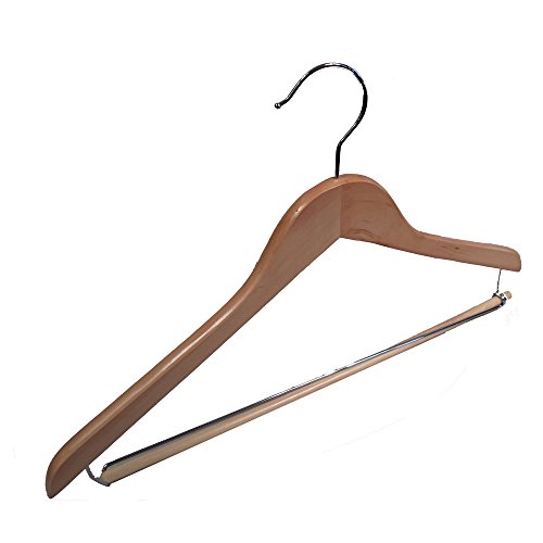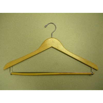 -. Title : Genesis Flat Suit Hanger w Lock Bar in Light Walnut - Set of 50
