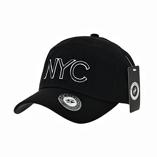Simple plain baseball cap with NYC New York City Lettering 100% cotton round crown. Round top button. Inner of cap is lined with sweatband for optimal wearing comfort 6-Panel cap / Sewn eyelets / 4 rows of stitching on the visor