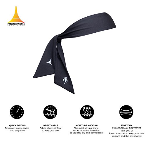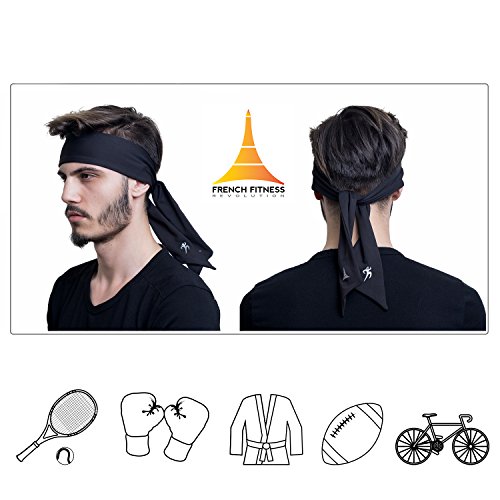KO Head Tie Headband / Sports Sweatband for Tennis, Basketball, Workout or Running, Head Bands for Men and Women by French Fitness Revolution