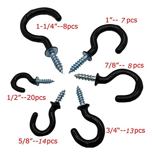 - This set of Cup Hook has 6 sizes of 1/ 2 inch, 5/ 8 inch, 3/ 4 inch, 7/ 8 inch, 1 inch, 1 - 1/ 4 inches, 6 different cup hook sizes to meet your needs.