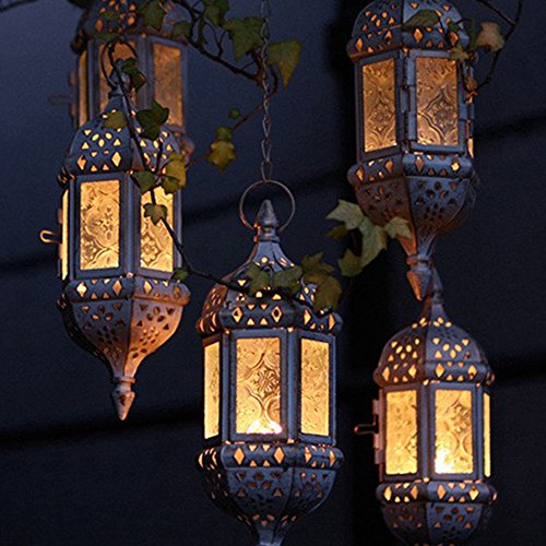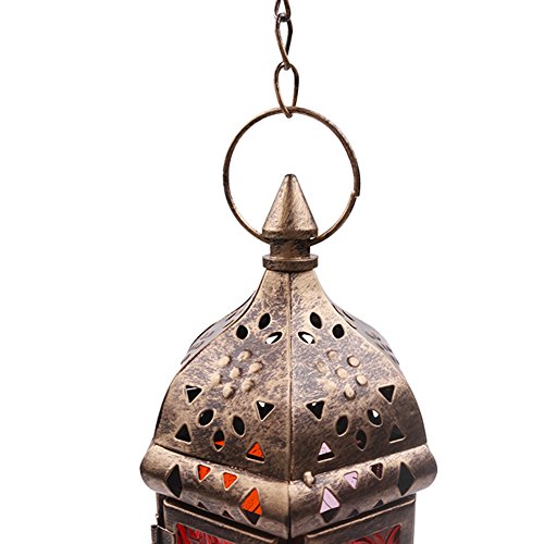 -. Feature : ✔ Unique style- these chandeliers are not just lanterns, candlelight, it is for your garden or porch, living room, bedroom adds color and exotic atmosphere, is a mysterious and retro decorative lights / ✔ Fine Material- Moroccan candle lanterns are carved with iron and embossed glass, colorful stained glass and hollow iron shade in any space with a unique pattern divergence of light, absolutely beautiful, mysterious / ✔ Applicable Occasions- very suitable for weddings, parties, full of candles, hanging in the space above the bedroom or bedroom, living room, porch, hotel decoration, holiday decoration / ✔ Size- candle holder 23CMx 8CM, attached a 40CM iron chain for hanging, the top has a round hook, easy to chain hoisting. / ✔ Popular- Due to the style, the P.R.Ice of the economy and the overall craftsmanship, they are a popular choice for designers. The real Moroccan-style lanterns are unique works of art