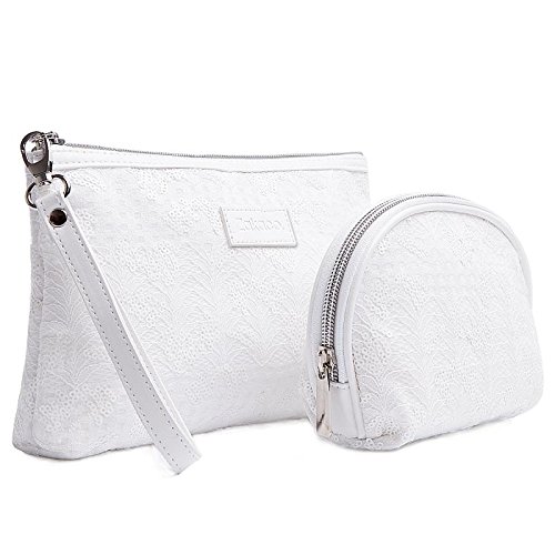 COSMETIC BAG SET-One large cosmetic bag with wristlet and one small cosmetic pouch bag for purse.Perfect travel makeup organizer bags .