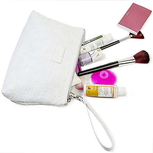 PURE WHITE with SEQUINS-This makeup bag for wommen made of pure white cloth with sequins that will keep you fashion .