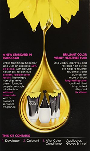 Unlike traditional hair color, olia uses an exclusive 60% oil blend, with natural flower oils in the colorant. The unique oil-based formula propels colorants deep into the hair without ammonia, for pure, vivid, long-lasting color. Olia achieves maximum color performance while the oils help reverse roughness and dullness, visibly improving and restoring hair.Feature