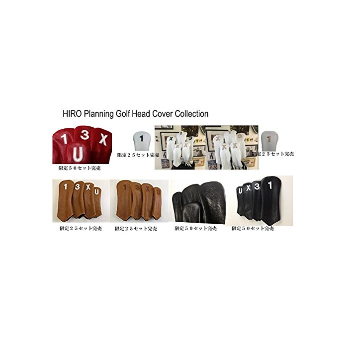 HIRO Planning Office ★엠보스 형압우 가죽을 사용한 골프 헤드 커버 4개 세트 [은넘버링/흑땅]
