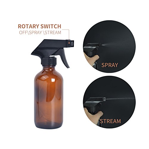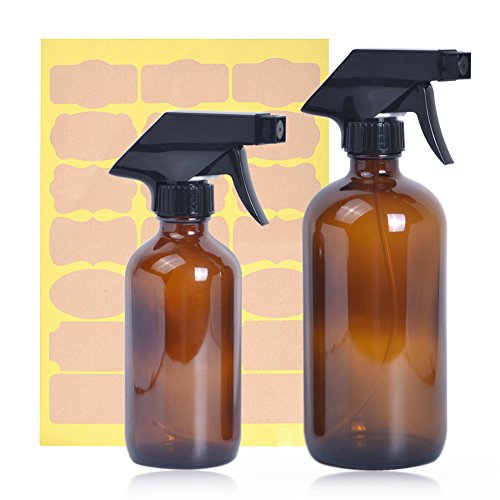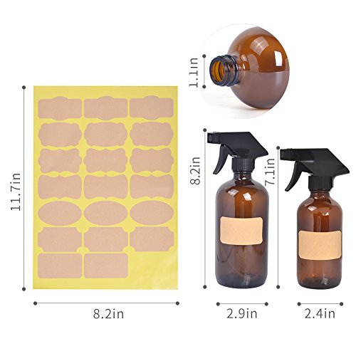 Empty Amber Glass Spray Bottles with Labels(2 pack) ,8 OZ and 16 OZ Refillable Container for Essential Oils, Cleaning Products or Aromatherapy - Durable...
