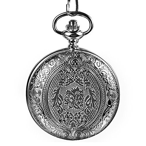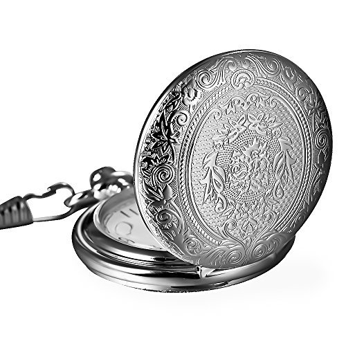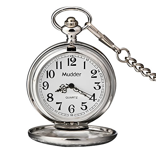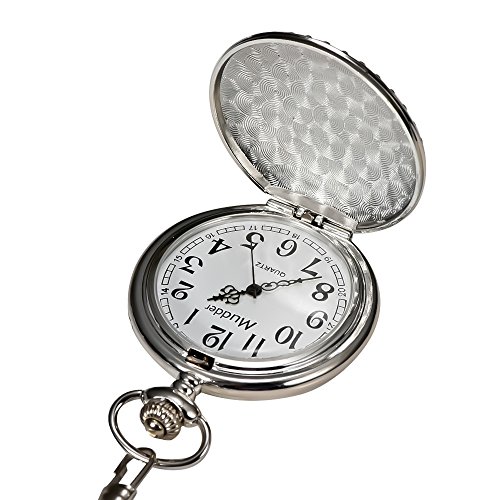 -. Title : Mudder Vintage Silver Stainless Steel Quartz Pocket Watch Chain