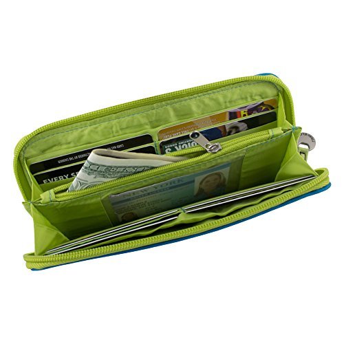 Studio : Travelon Publisher : Travelon Binding : Apparel Product Description You always want to protect your identity, no matter where you are, so do it with the Travelon SafeID Hack-Proof Embroidered Ladies RFID Wallet. Important documents such as your passport, credit cards, key cards, and driver's license all contain RFID chips that broadcast your personal information. This wallet blocks the transmission of this information, preventing unauthorized access by others. Ideal for everyday use or use while traveling, this wallet includes a total of 8 card slots plus an ID slot for easy organization. Also included are two currency pockets, which are large enough to hold a passport, plus a central zip pouch which is great for coins or other loose items. The wallet zips all the way around to help keep everything secure. 0