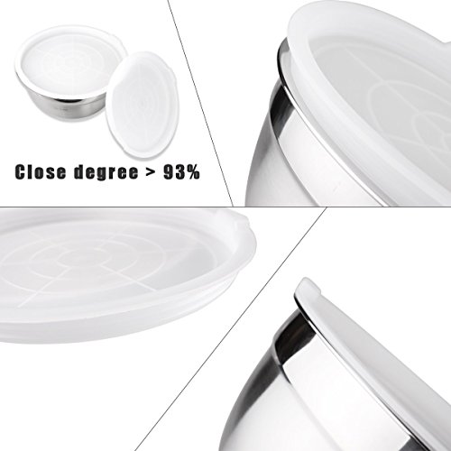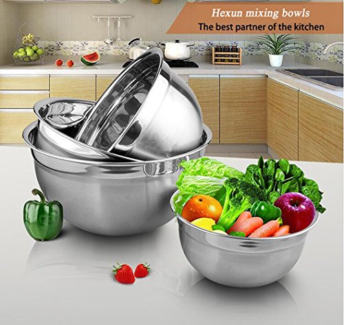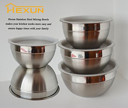 Hexun 5 Piece Stainless Steel Mixing Bowl Set with Airtight Lids, Salad bowls/Egg Beating Bowls With Clear Lids Mixing Bowls 1.5/2/3/4/5 Qt(Thickening Clear)