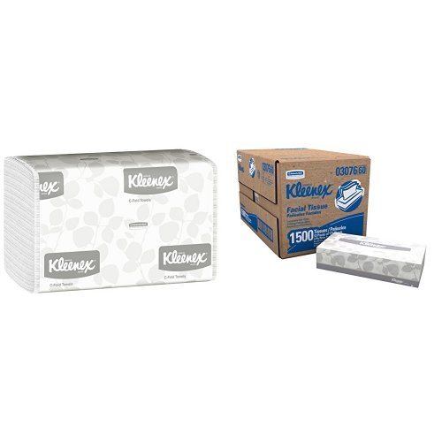 Kleenex C Fold Paper Towels (16 Packs of 150 Towels & Kleenex Facial Tissue (12 Packs of 125 Tissues)
