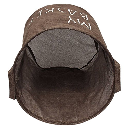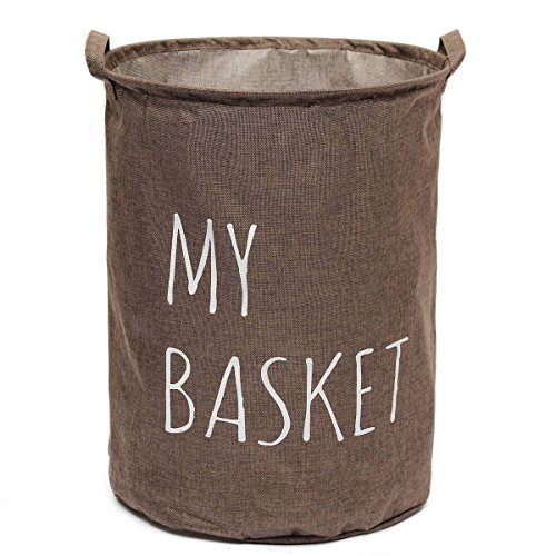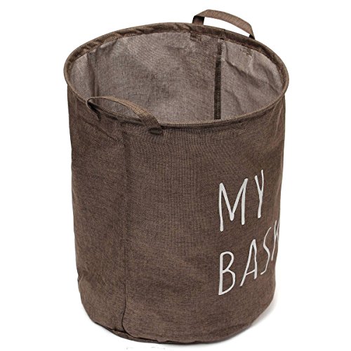 KINGSO 20 x 17 Inch Foldable Round Laundry Basket Hamper Storage Bag, Coffee