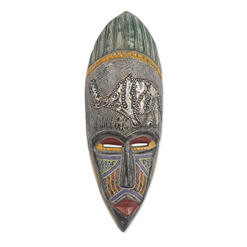 NOVICA "Giwa" African Beaded Wood Mask