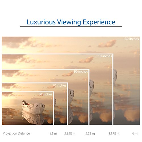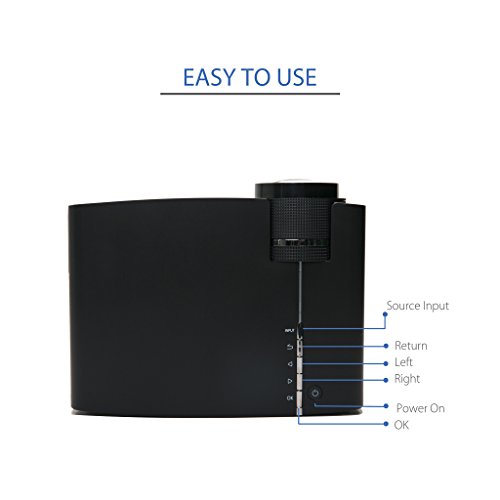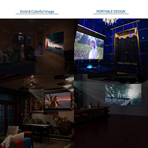1. Excellent Picture Quality---- The Mini Projector' projection size is 50 ~ 130 inch ( Best for 100 inch ). Projection Distance is from 5 ~ 13ft ( Best for 8 ft ). 800 x 480P Native Resolution and support up to 1080P, the contrast is 1000 : 1 offer a big clear screen experience. You can see whatever you want.