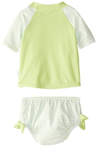 2 piece rash guard and ultimate swim diaper bottom. No other diaper necessary. Stretchy rash guard has short sleeves, curved hemline, and heat transfer design. Ultimate swim diaper coordinates with matching stripe and bows. Nylon and lycraFeature