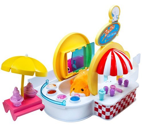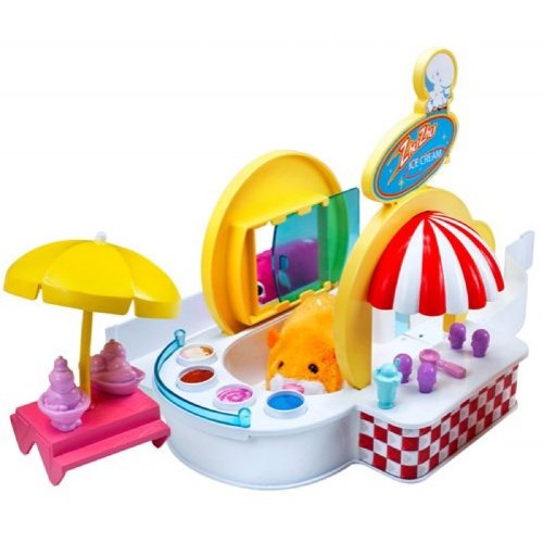 Nothing beats a cool ice cream treat on a hot summer day and now your ZhuZhu PetTM has the chance to own its very Ice Cream Shop. Let your hamster friend whip up some yummy ice cream delicacies to you and all your hamster friends including the shop's specialty flavor; Raspberry Zhu-wirl!