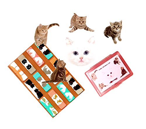 Cute Kawaii Japanese Office and School Supplies Kitty Cat Animal Post-it Bookmarks Index Sticky Flags Tabs - Portable Hard Plastic Case, Holder Storage Box Set