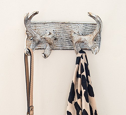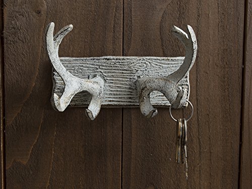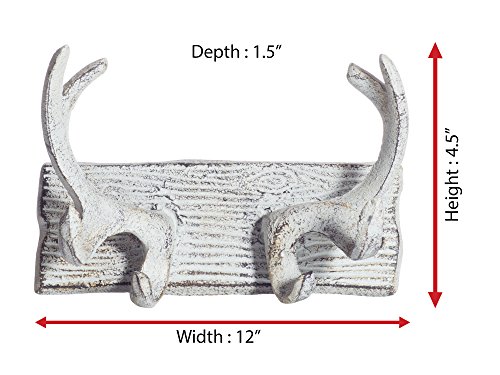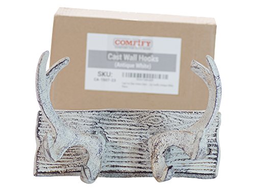 Vintage Cast Iron Deer Antlers Wall Hooks by Comfify | Antique Finish Metal Clothes Hanger Rack w/ Hooks | Includes Screws and Anchors | in Antique White| (Antlers Hook CA-1507-23)