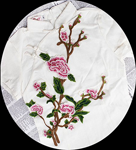 -. Title : 1pcs 18.9*10.2" 3D Rose Peony Flower Patch Embroidered Garment Appliques Sew On Patches Clothes Cheongsam Wedding Dress Accessory(No glue)