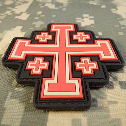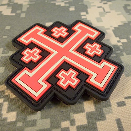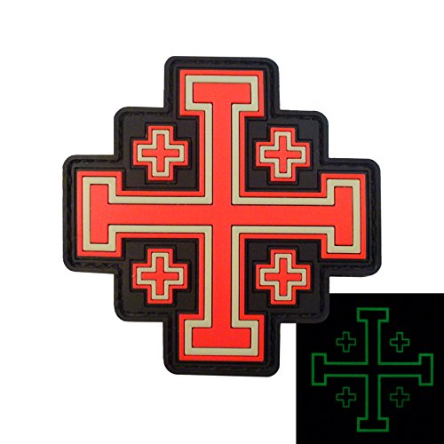 -. Title : Glow Dark Jerusalem Cross Templar Crusaders Tactical Morale PVC 3D Velcro Patch