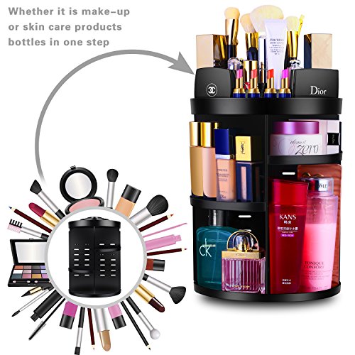 Maxkim 360-Degree Rotating Makeup Organizer, Adjustable Multi-Function Cosmetic Storage Unit, Compact Size