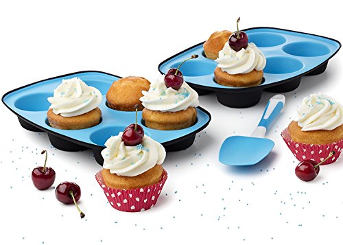 Muffin Pans Set of 2 Baking Tray Cupcake Maker with Strong Flexible Silicone Spatula
