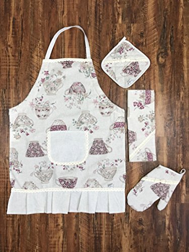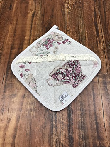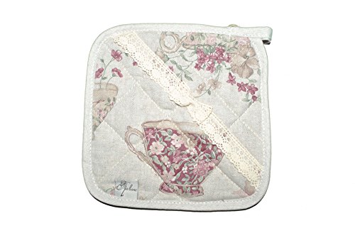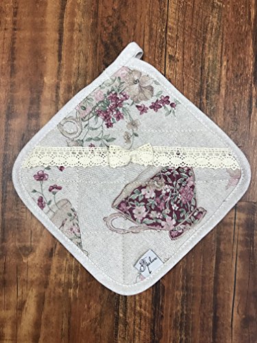 Cotton square potholder with cotton lace in French country style by Provence (cups)