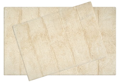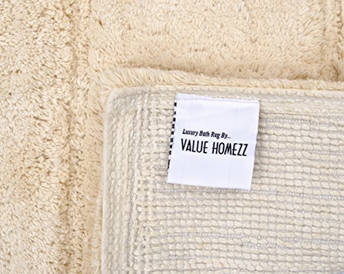 Value Homezz ( 2 Piece Bathmat Set ) Stripes design 100% Super Soft Cotton Tufted Accent Bath Rugs Size 21 x 34 / 17 x 24 Non Skid High Absorbency & Durable Machine washable Bath Mat (Beige)