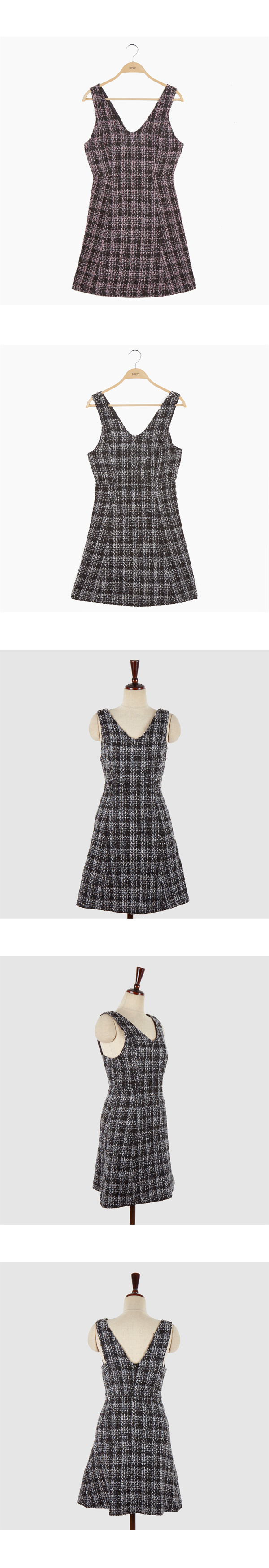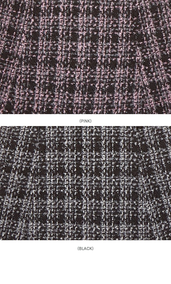 - 트위드 원단의 A라인형 원피스로 허리라인은 잡아주고 플레어스커트가 날씬하게 연출을 도와줍니다.