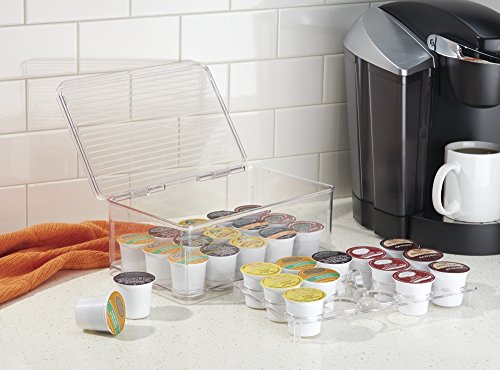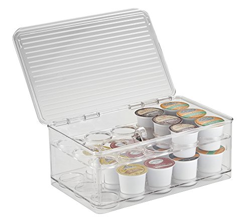 mDesign Stackable K-Cups Coffee Pod Holder with Lid for Kitchen Pantry, Countertops - 2-Tier, Holds 29 Capsules, Clear