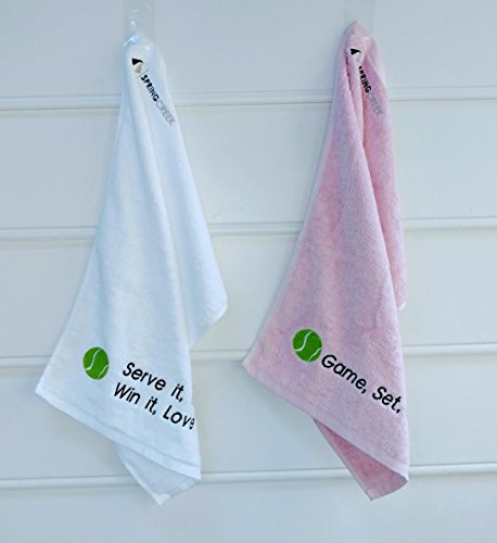 (Springcreek Gear)/Bedding Bath/Bath/DIRECT FROM USA/Large (16 X 24) and Soft, 100% Cotton Tennis Towels, Pack of 2 (White, Pink), Tennis Gifts - Sp...