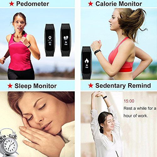 Multi-Functions: Pedometer, health sleep sensor, calories counter, sync date and time, smart notifications, remote camera control, anti-lost alert, sedentary alert.