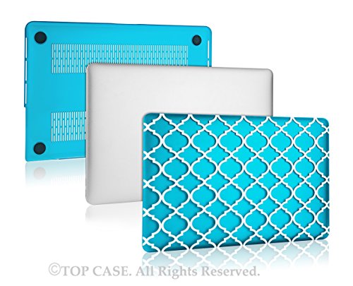 TopCase Quatrefoil / Moroccan Trellis Aqua Blue Ultra Slim Light Weight Rubberized Hard Case Cover for Macbook Pro 15" with Retina Display Model: A1398 (NEWEST VERSION Release October 2013)