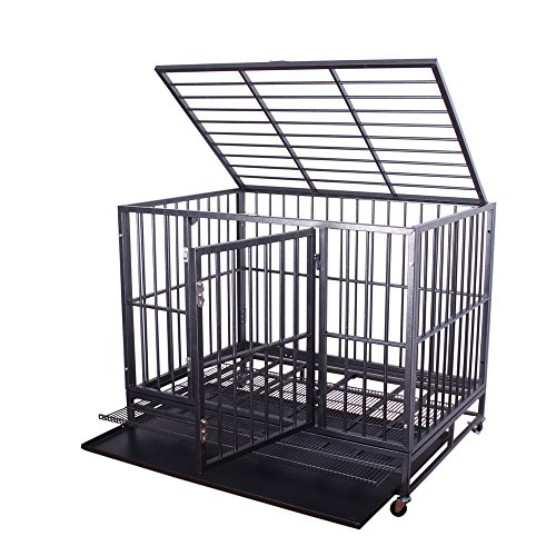 -. Binding : Misc. -. Brand : Haige -. Feature : Heavy duty material and qualified workmanship, a perfect strong house for pets to live in / Top and front door design makes it easier to access your pets / Double stainless latches to avoid accident escaping, provide enough security / Both grate floor and tray can slide out for easy cleaning / 4-wheels for convenient moving and two of them lockable to avoid accidental moving -. Label : Haige -. Manufacturer : Haige -. PackageQuantity : 1 -. ProductGroup : Pet Products -. ProductTypeName : PET_SUPPLIES -. Publisher : Haige -. Studio : Haige -. Title : Haige Heavy Duty 36"/42" Dog Crate Pet Kennel Dog Cage Black