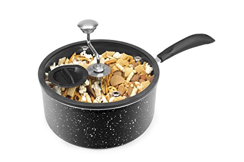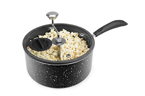 -. Binding : Kitchen -. Brand : Zippy Pop -. Color : Black Marble -. EAN : 0853821005354 -. Feature : Premium aluminum pot with non-stick interior / Innovative design features patented tumbling mechanism and vented, tempered glass lid with silicone rim / Patented tumbling mechanism features a unique stationary baffle and propeller arms to coat each kernel with seasoning / Create custom snack mixes by adding ingredients such as chocolate, caramel and more through the silicone covered flavor port / Dishwasher safe and built to last; 5-1/2 Quart Capacity; 10 inch diameter -. Label : Zippy Pop -. Manufacturer : Zippy Pop -. Model : 00043-01-ZIP -. PackageQuantity : 1 -. ProductGroup : Kitchen -. ProductTypeName : KITCHEN -. Publisher : Zippy Pop -. Size : 5-1/2 quart -. Studio : Zippy Pop -. Title : Zippy Pop 00043-01-ZIP Stovetop Popcorn Popper with Glass Silicone Rimmed Lid, 5-1/2 quart, Black Marble -. UPC : 853821005354
