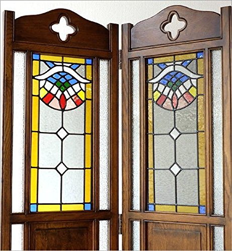 스탠드글라스의 3매 접어 스크린은 손수 만든 스탠드글라스가 중후하고 화려함입니다.고급인《나라》의 무구재(단단한 나무)와 매치 해 방이나 현관 홀이 한층 그레이드 업 하여 스탠드글라스부터 빛이 흘러 공간을 매우 화려함으로 연출합니다.좌우로 180도씩 회전하는 경첩에 설치의 각도는 자유자재입니다.
