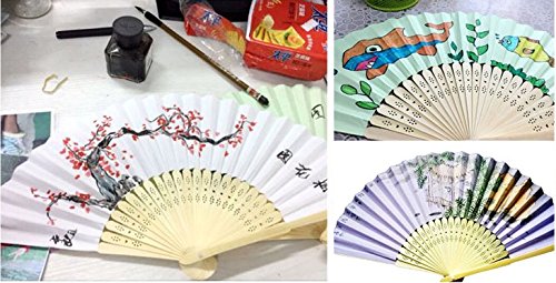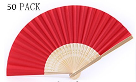 WOAIWO-Q 50 Packs Bamboo Folding Fan Handheld Fans Paper Folded Fan for Wedding Party and Home Decoration (Red)
