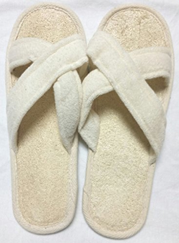 -. Feature : Soft Terry over the foot Criss Cross / Exfoliating Loofah In Sole / After bath Spa Slippers
