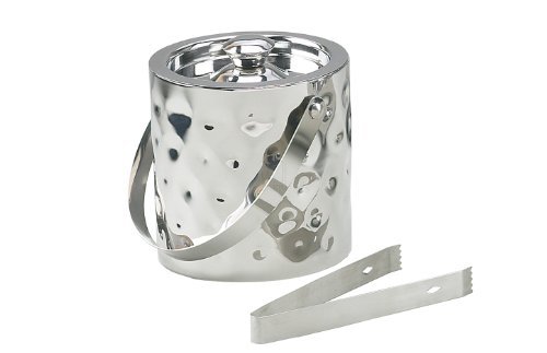 -. Title : Elegance Bolt Hammered 6-Inch Stainless Steel Doublewall Ice Bucket with Tongs