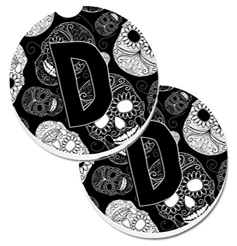 Caroline's Treasures Letter D Day of The Dead Skulls black Set of 2 Cup Holder Car Coasters CJ2008-DCARC, 2.56, Multicolor