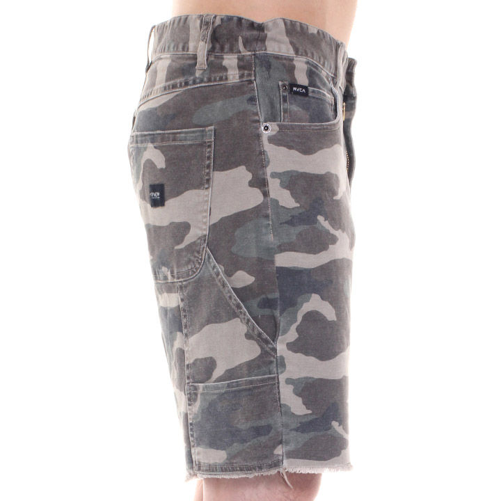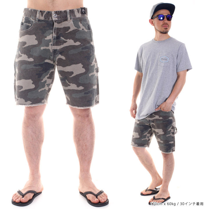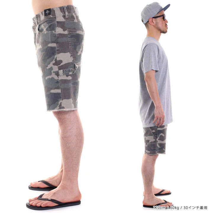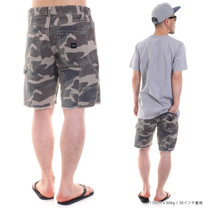 ・丈夫なウォッシュと5ポケットのデザインでプリントされた迷彩キャンバスのショートです。