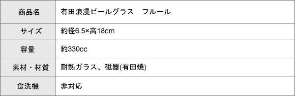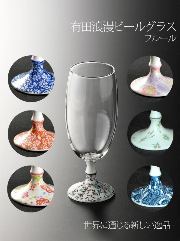 透明なガラスと長い400年の歴史と伝統を持つ有田焼の脚部とを融合させることで世界に通じる新しい逸品として仕上げました。このビールグラスでリラックスタイムを是非お楽しみください。 製造国:磁器:日本、ガラス:中国 素材・材質:耐熱ガラス、磁器(有田焼) 商品サイズ:約径6.5×高18cm 重量:約170g 仕様:容量:約330cc食洗機使用不可 ※サプライヤー直送品 ご注文後2~3営業日後の出荷となります【商品名】有田浪漫ビールグラス フルール 青小菊・INT-102-5-2