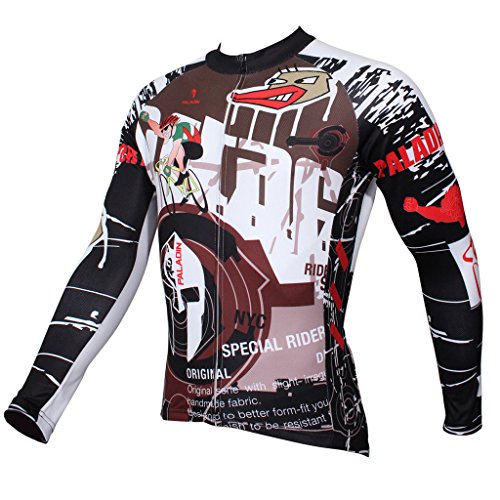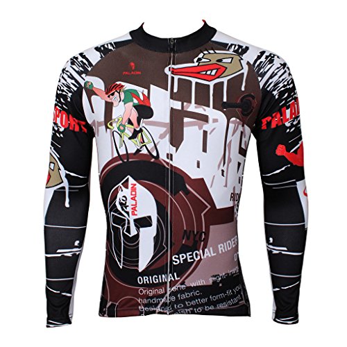 QinYing Men Patterns Breathable Long Sleeve Biking Cycling Jersey Top Black XL
