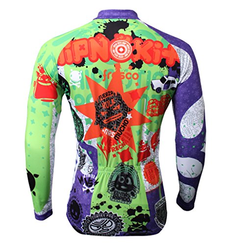 QinYing Men Patterns Breathable Long Sleeve Biking Cycling Jersey Top Green XXL